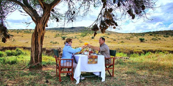 Each evening in the bush presents a new opportunity for romance. Couples can enjoy sundowners, Kenya’s beloved safari tradition, where cocktails are served against the backdrop of an African sunset. Follow that with a private candlelit dinner under the stars, complete with lanterns, gourmet cousin and the distant sounds of wildlife. These unique dining experiences are as unforgettable as the game drives themselves.